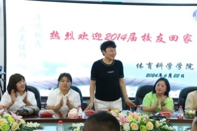在会议开始前,班委会播放了一段以同学们在大学时代的照片制作的视频,当一张张青涩的面孔出现在眼前时,瞬间把同学们拉回到了员工时代的满满回忆。如今十年后再聚母校,读书期间的学习趣事及校园生活的点滴,仿佛昨日在眼前历历在目,不甚感慨。会议开始后,学院于晶经理代表学院对返回母校的员工们表示欢迎,介绍了母校近几年的发展变化。员工们也纷纷发言,回忆分享自己十年来的发展情况,其中既有毕业后成长的感悟,也有工作中艰苦创业的历程,还有对母校栽培的感恩。最后会议在10级社会体育专业员工为学院赠送礼物,学院为员工颁发纪念礼品及合影留念中落下帷幕,同学们纷纷表达了对母校的祝福,期待下一个十年再回母校。