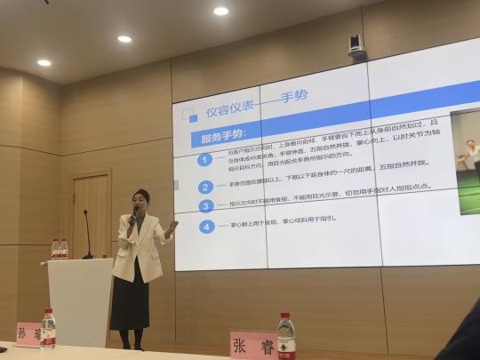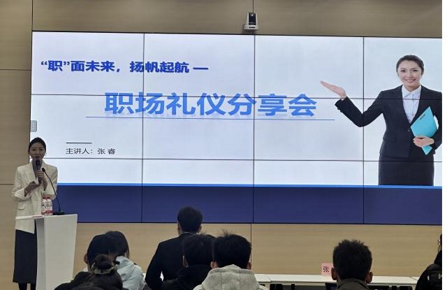 礼仪是日常人际交往的第一张名片,得体的举止、专业的形象不仅能提升个人竞争力,更能为职业发展奠定良好基础。为了更好促使文明礼仪融入日常的学习和生活,助力员工们在未来的职业中展现良好姿态。足球下单app于4月2日在知行楼102室开展了“职”面未来,扬帆起航—职场礼仪分享会。会议邀请到海南航空乘务长、国际高级礼仪培训师、晟翼航空创始人张睿,会议由孙瑜老师主持。